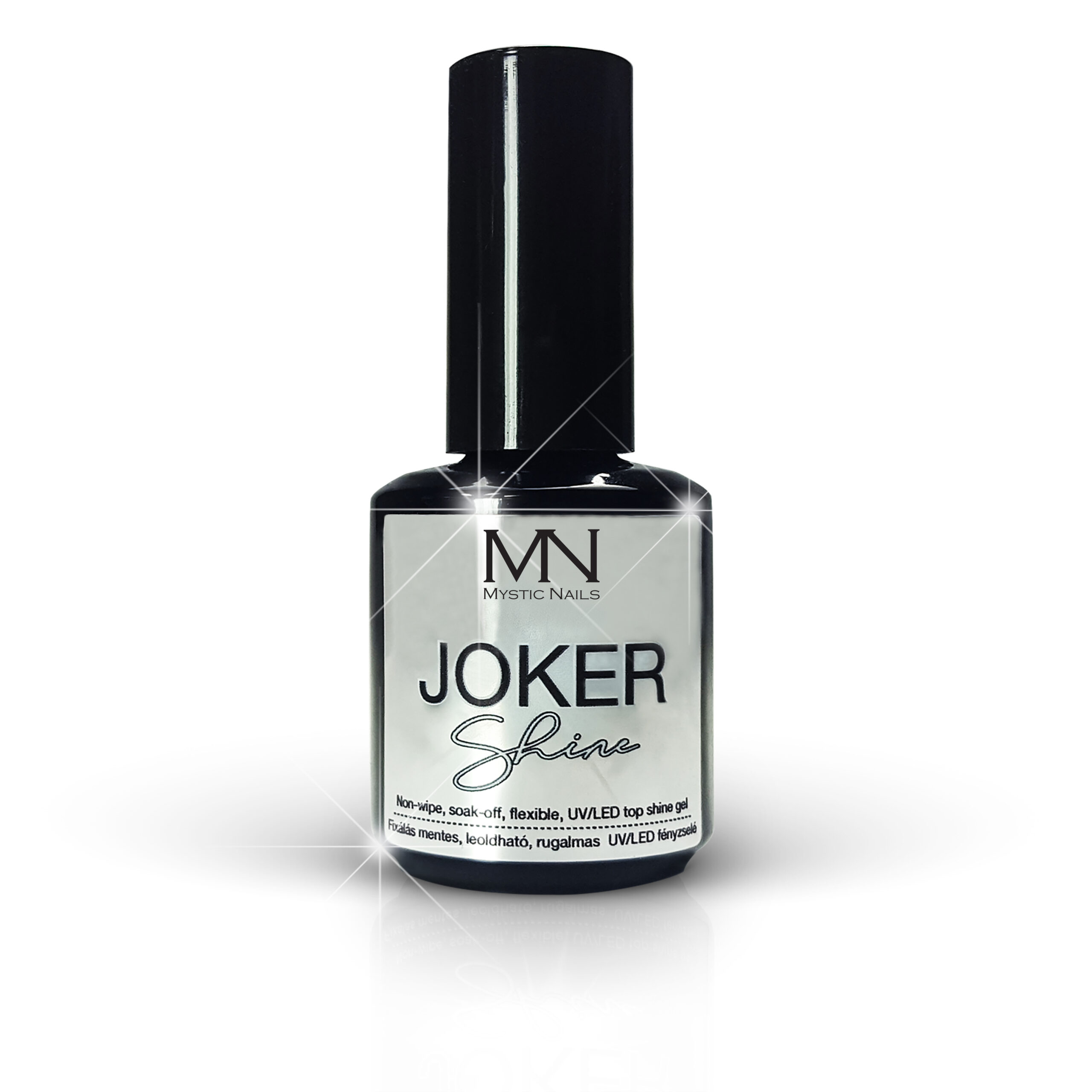 Elige Joker Shine y lleva tus diseños de uñas al siguiente nivel con un top gel brillante y duradero.