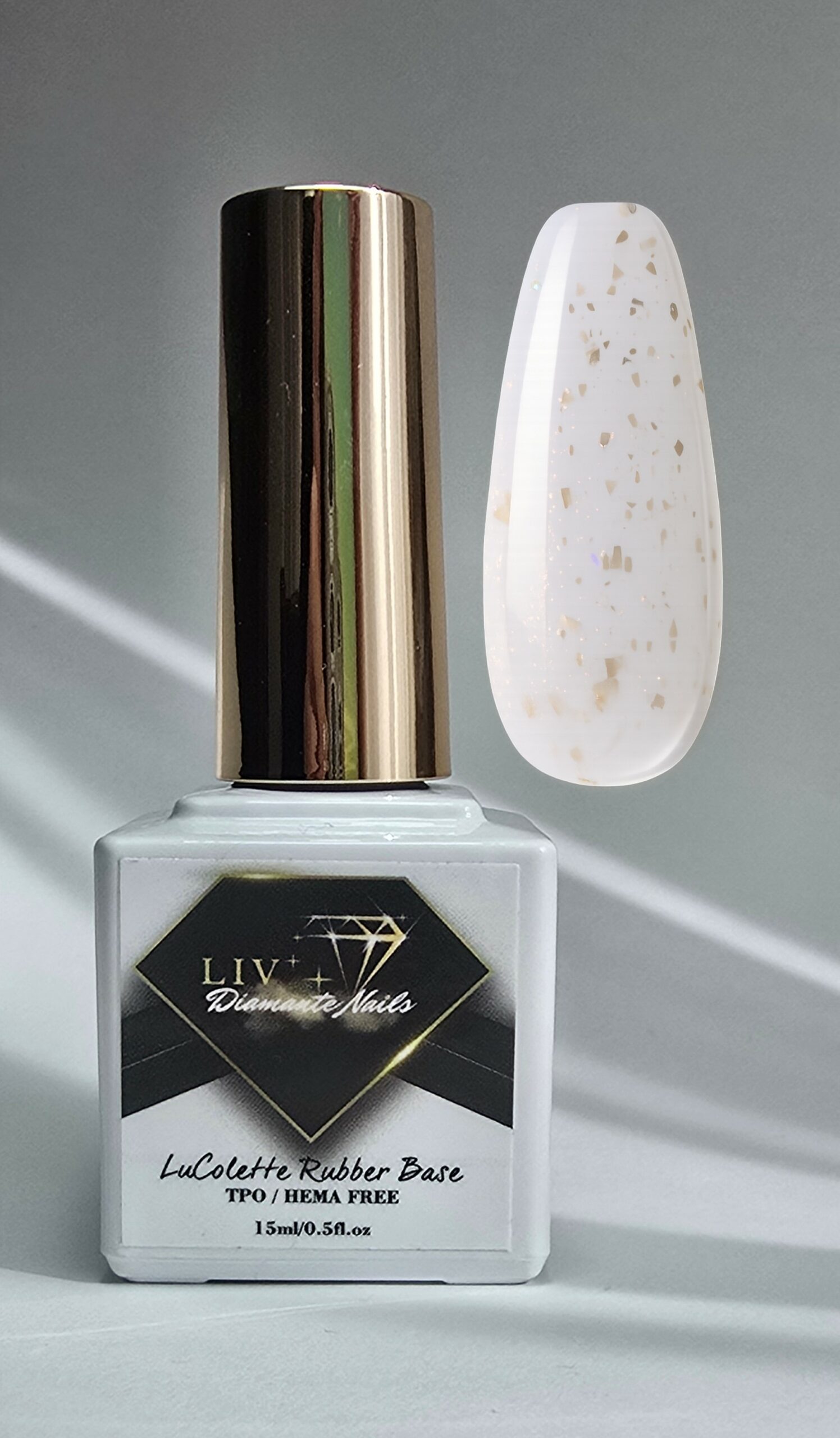 LuColette Rubber Base Gel está pensado para quienes no aceptan compromisos: duración de alto nivel, tonos deslumbrantes con destellos y una fórmula respetuosa con la uña.